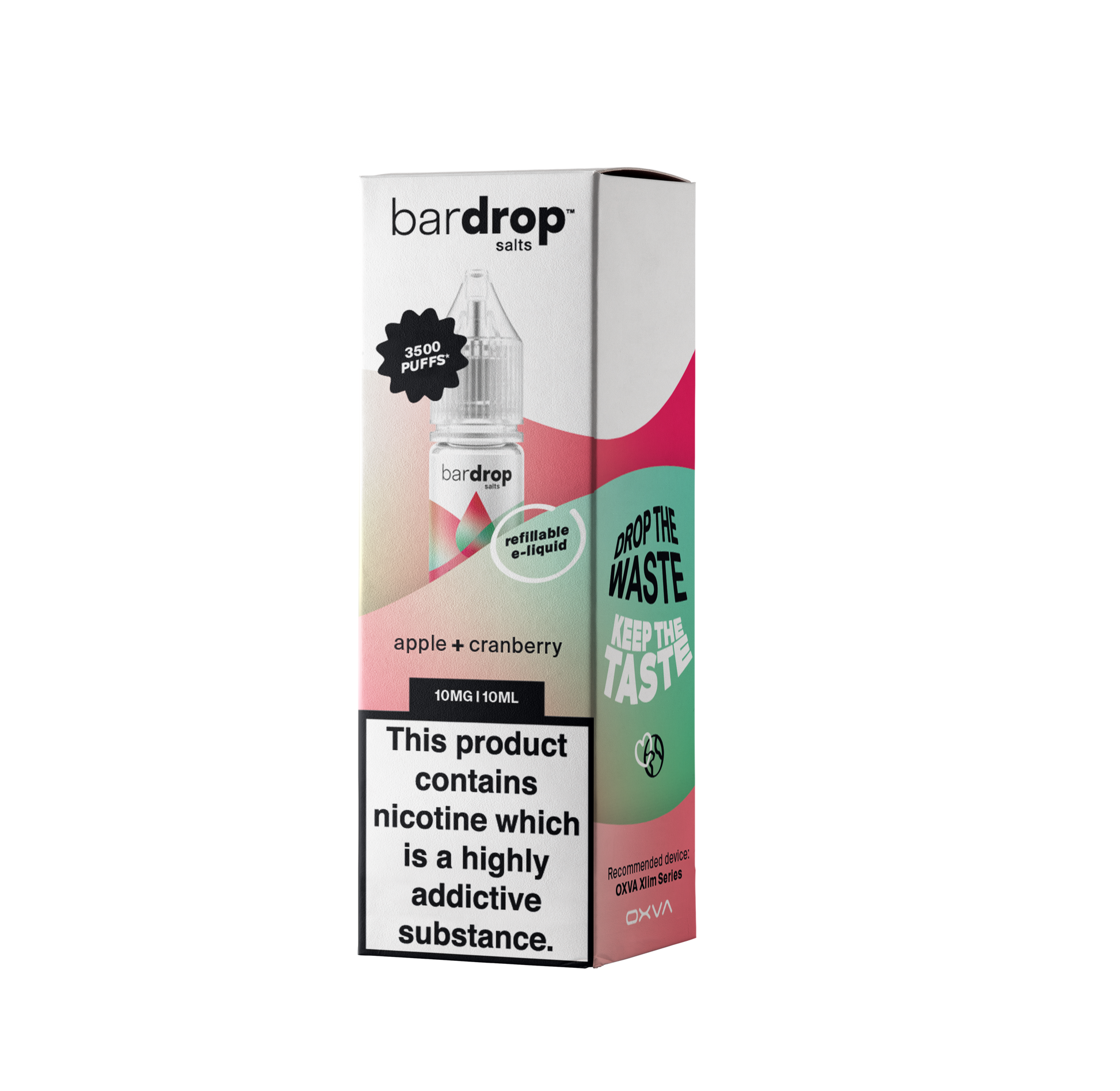 Apple + Cranberry Bar Drop delivers a refreshing blend of crisp apple and cranberry in a smooth nicotine salt formula.