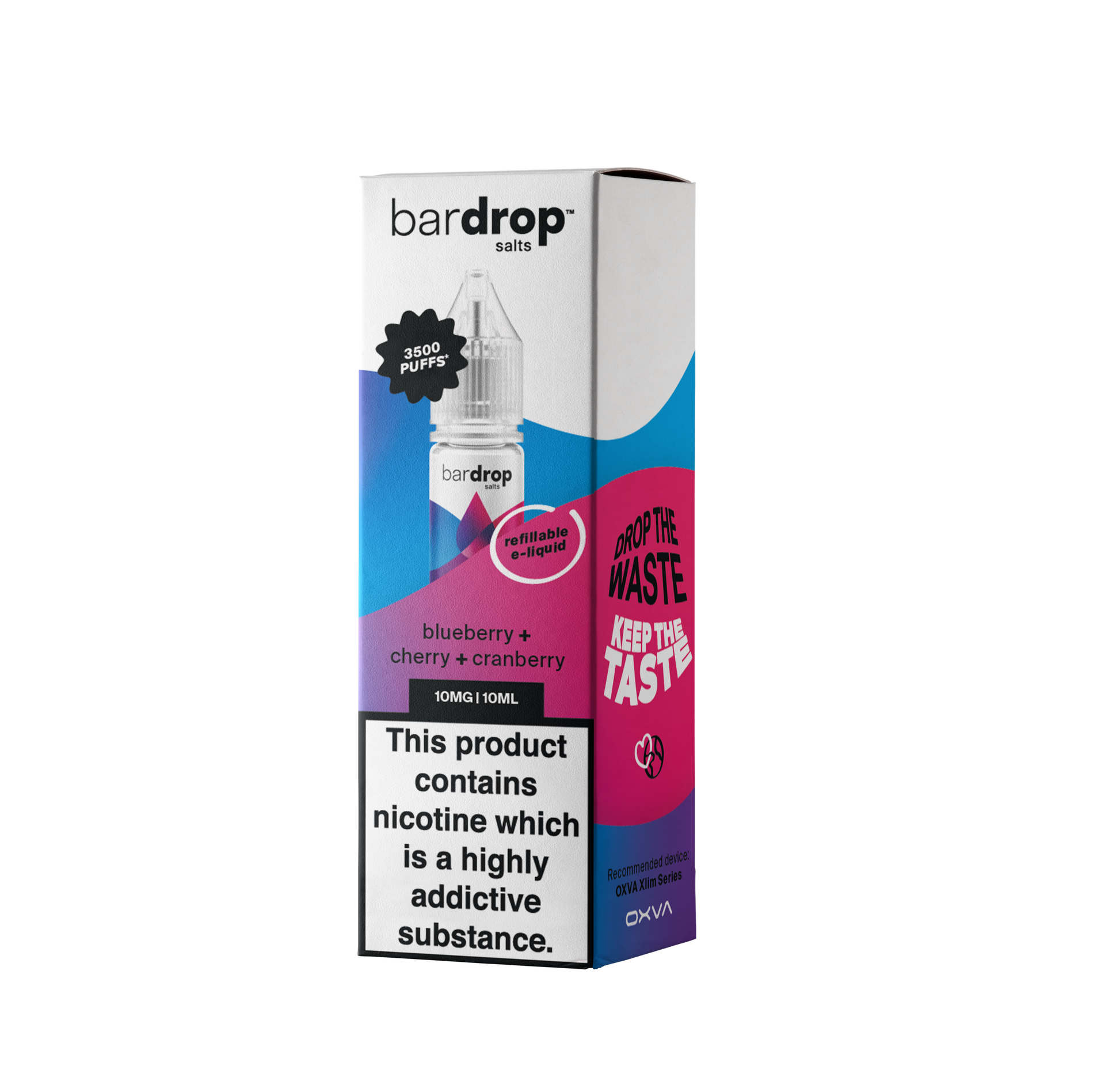 Blueberry + Cherry + Cranberry Bar Drop delivers a rich triple berry blend in a premium nicotine salt formula.