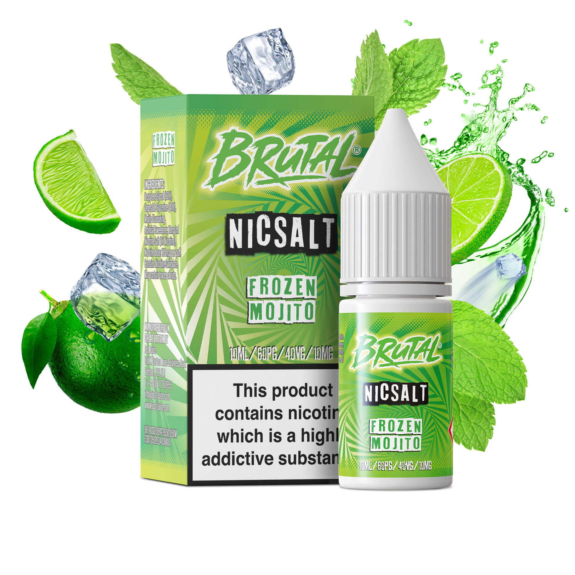 Frozen Mojito 10ml Nic Salt e-liquid from the Just Juice Brutal range delivers an intense icy mojito cocktail flavour with smooth nicotine salt formulation. Perfect for mouth-to-lung vaping devices and pod systems.