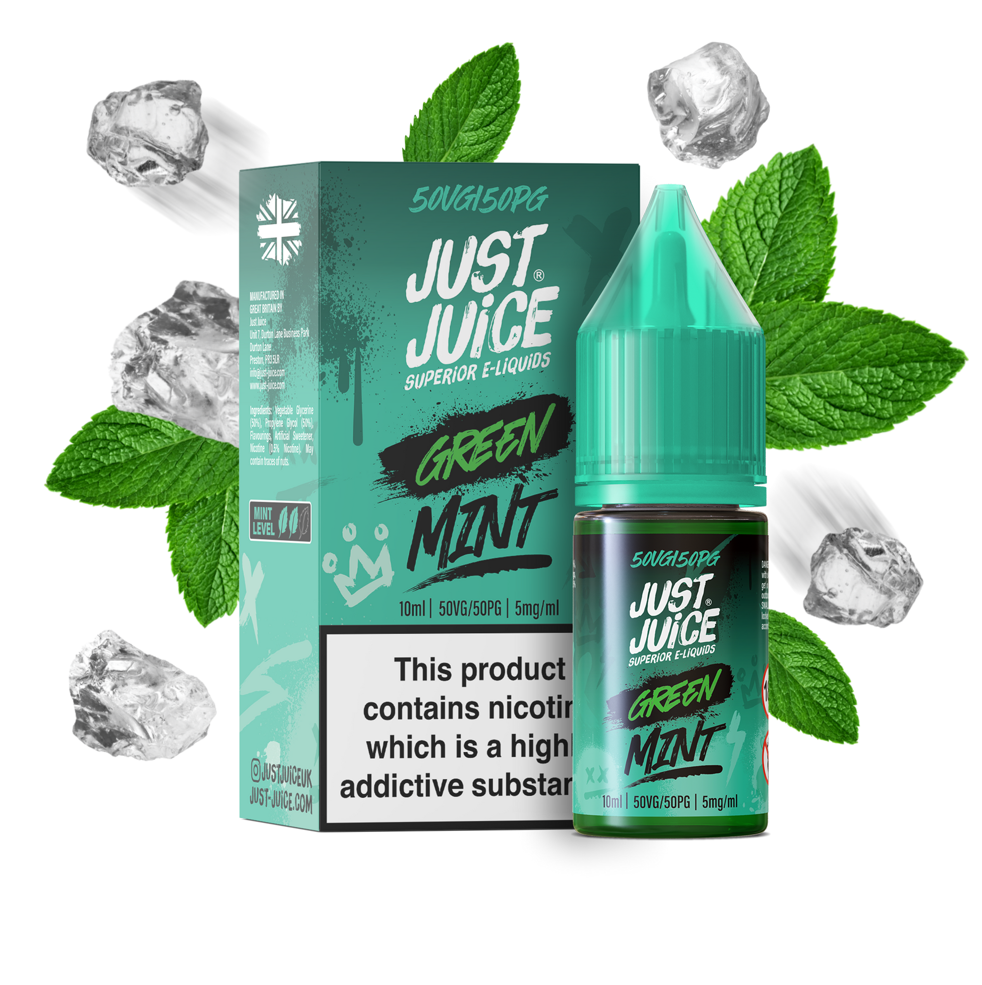 Enjoy the fresh, natural taste of Just Juice's Green Mint Nic Salt.