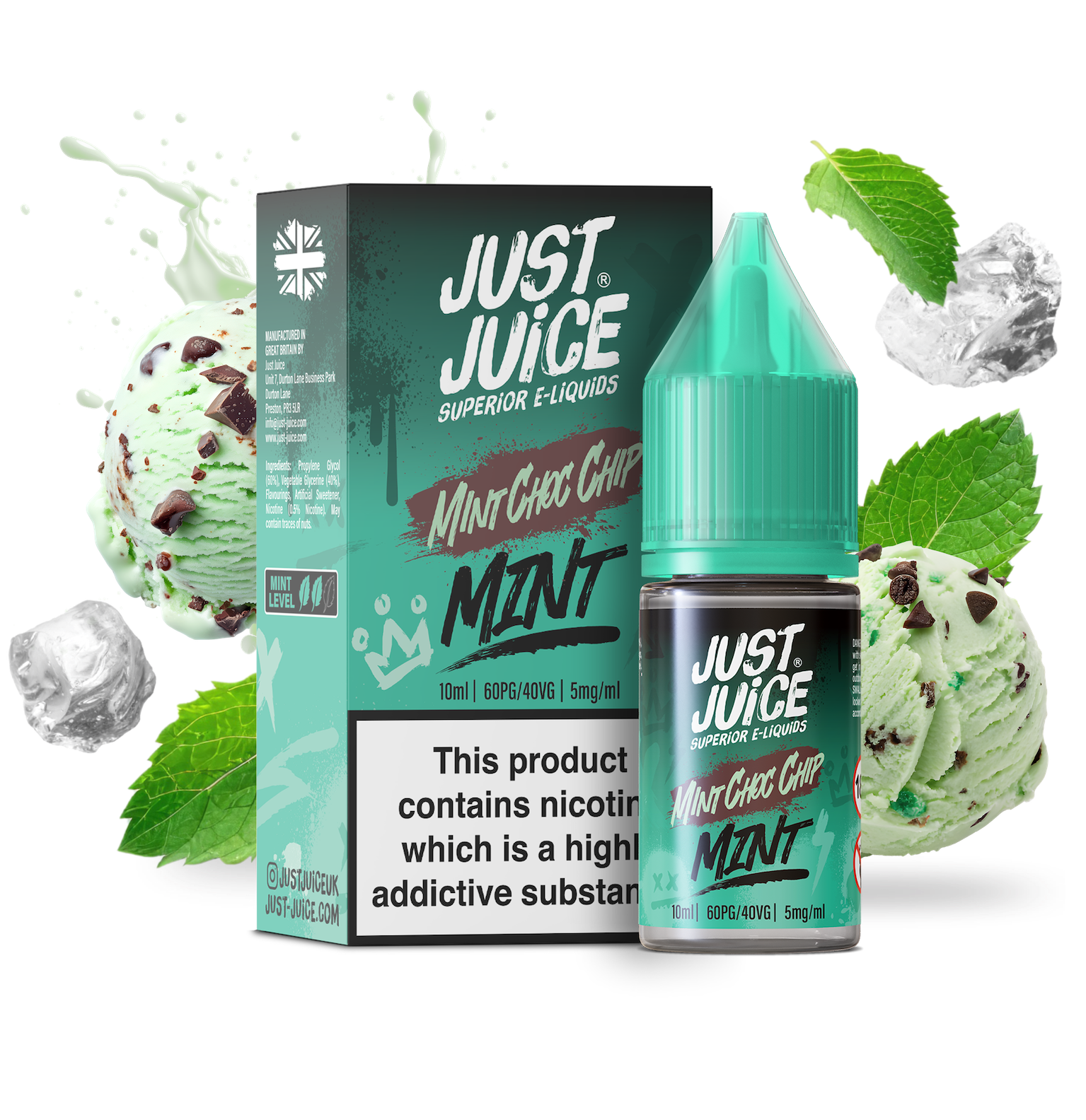 Indulgent dessert meets refreshing mint - this premium nic salt from Just Juice's Mint Range delivers creamy mint ice cream with rich chocolate chips for a sweet, satisfying all-day vape.