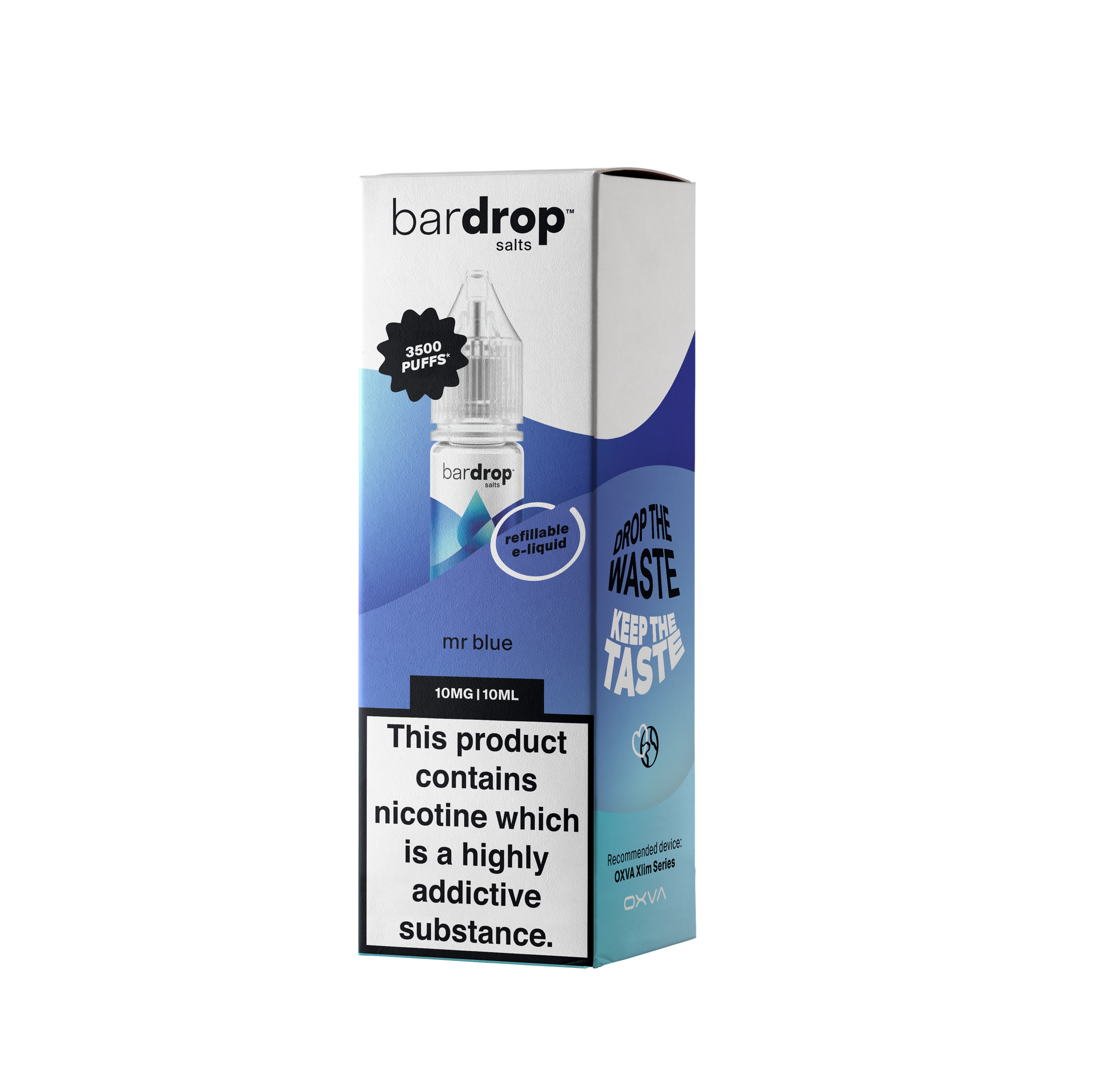 Dive into the bold, icy sweetness of BarDrop's Mr Blue Nic Salt.