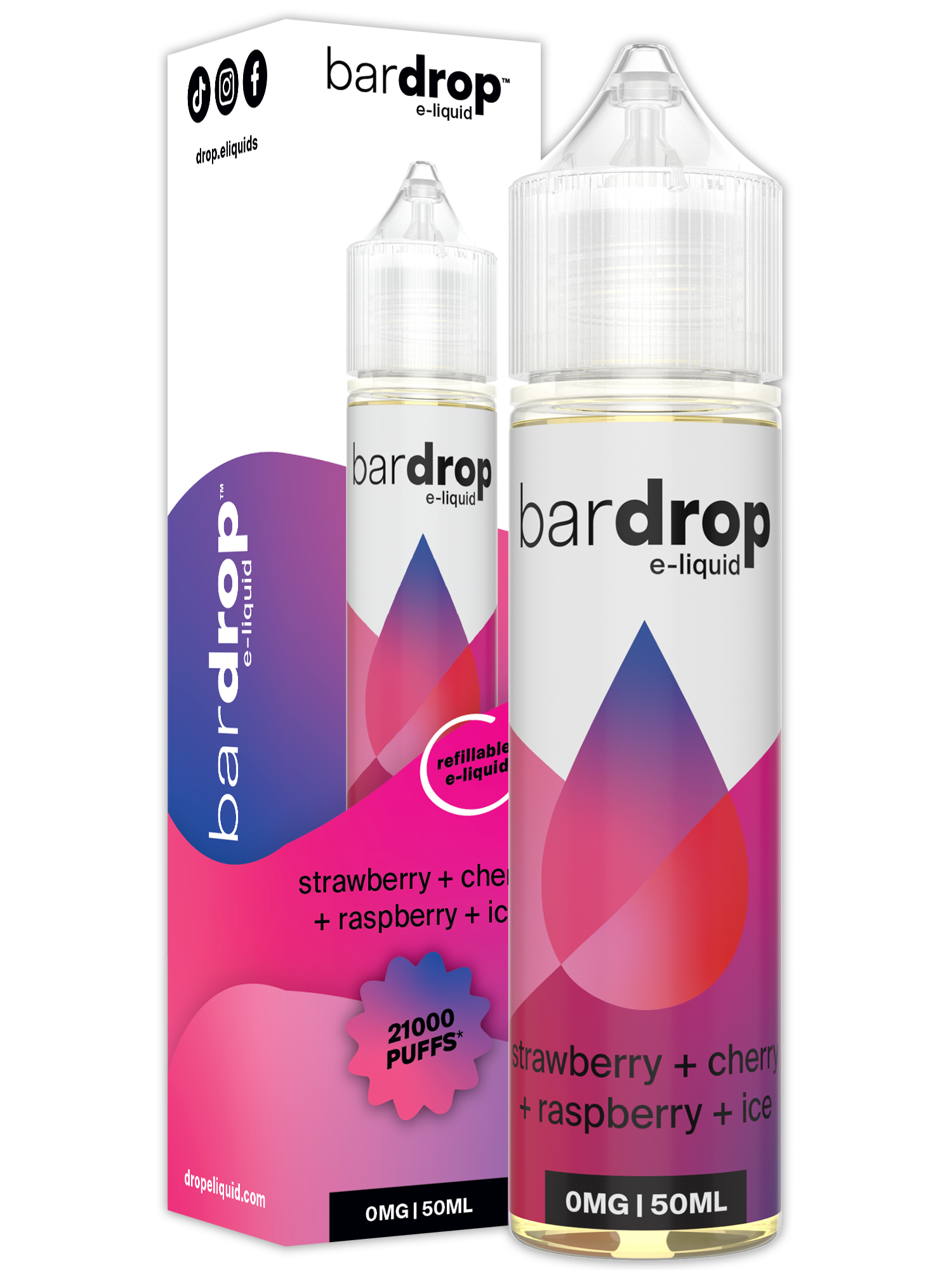 Triple berry explosion with an icy blast in a bigger bottle - this premium 60ml shortfill from Bar Drop combines sweet strawberry, juicy cherry, and tangy raspberry with refreshing ice for extended vaping pleasure.